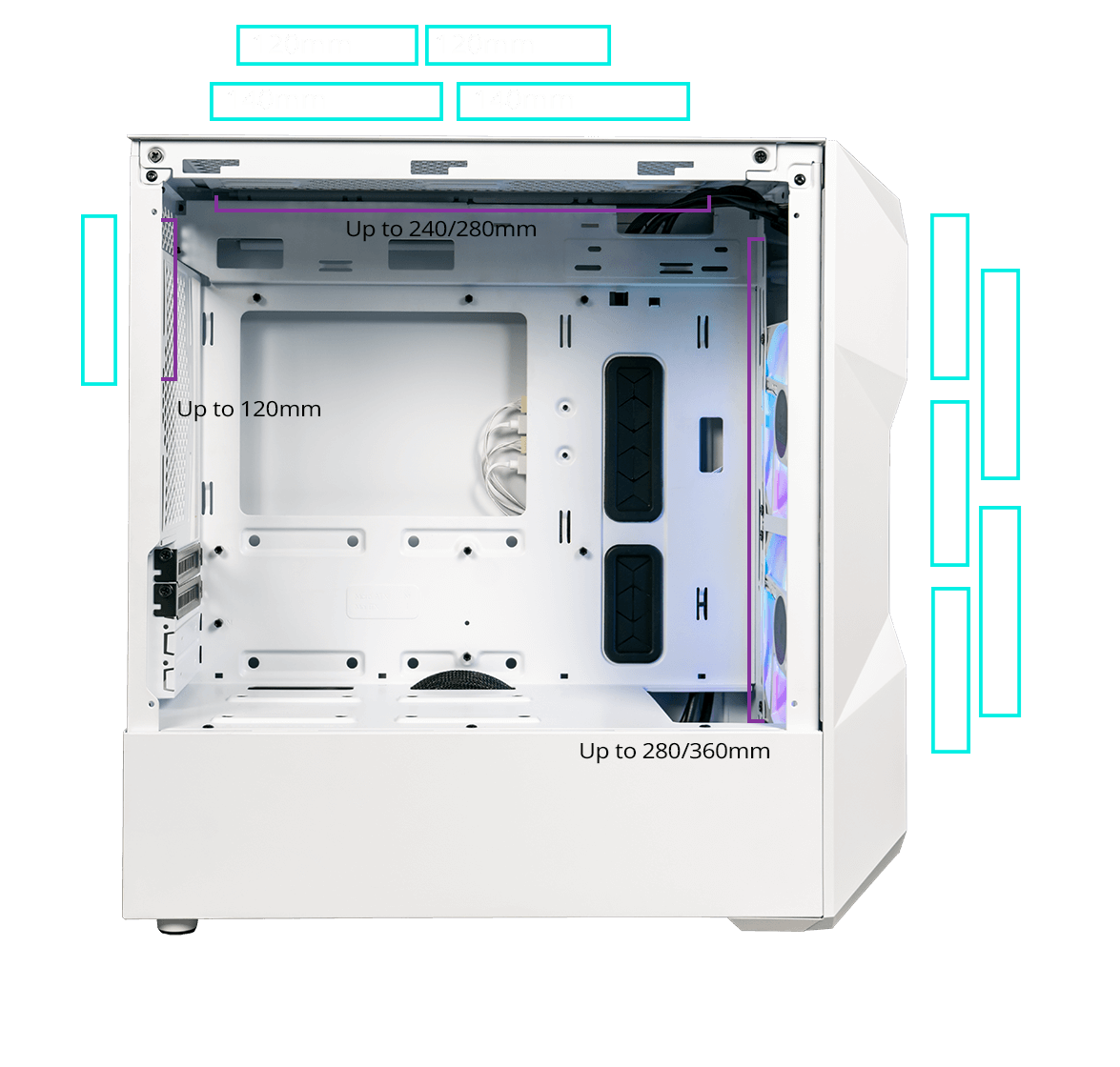 6 adede kadar fan desteği / ön, üst ve arka radyatör desteği, performanstan ödün verilmemesini sağlar.
