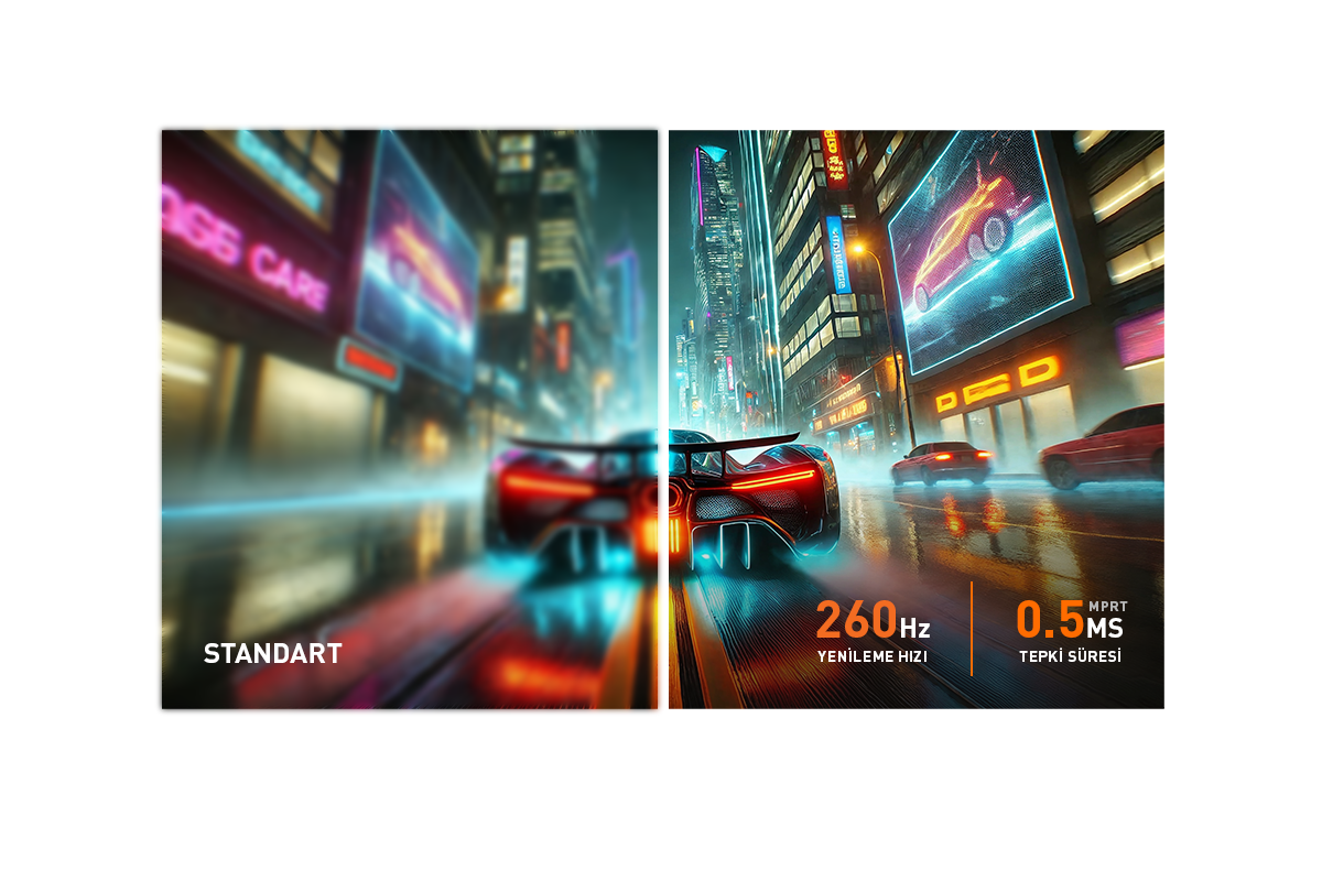 260Hz yenileme hızı ve 0.5ms (MPRT) tepki süresi gecikmeyi ve hareket bulanıklığını en aza indirir süper hızlı akıcı oyun performansı sunar.