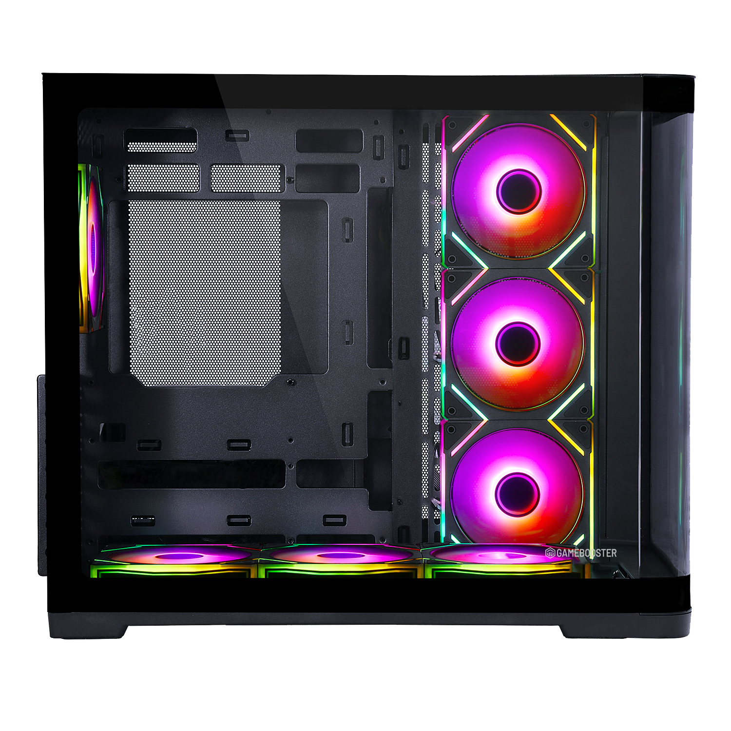 GameBooster G2852B, oyun odaklı sistemler için geliştirilmiş oyuncu kasasıdır. Şık tasarımı ve ARGB aydınlatmalı fanları ile göz kamaştıran olağanüstü görünüm sunar. Geniş iç hacmi ve üstün soğutma desteği ile hardcore sistemler kurmanıza olanak sağlar. Takılı olarak gelen 7 adet 120mm ARGB aydınlatmalı fanı ile olağanüstü soğutma sunar ve sistemin istikrarlı çalışmasını sağlar.