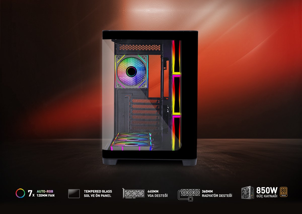 Önde ve yan panelde bulunan temperli cam ile sisteminizin görselliğini sergileyin.