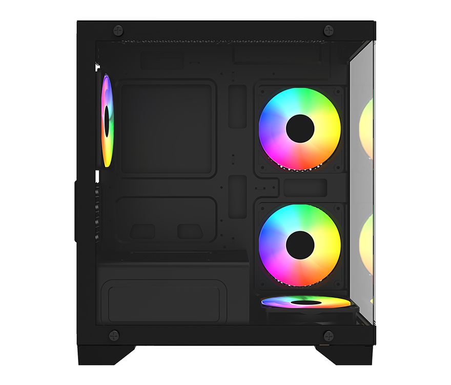 GameBooster M6001B kasa, en iyi soğutma performansı sağlamak için anakart yanında 2 adet, arkada bir adet 120mm ve altta bir adet sabit rainbow aydınlatmalı sessiz fana sahiptir. Güçlü sistemler için olağanüstü soğutma performansı sunar. Ayrıca sabit rainbow fanları kasanınızın içinde muhteşem görünüm sağlar. Ayrıca sıvı soğutma isteyenler için üstte 240mm'e kadar radyatör desteği sunar.