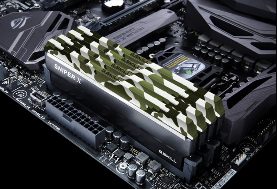 G.SKILL Sniper X DDR4 bellek serisi, şık siyah gövde ve benzersiz kamuflaj soğutucu tasarımı şık görünüm