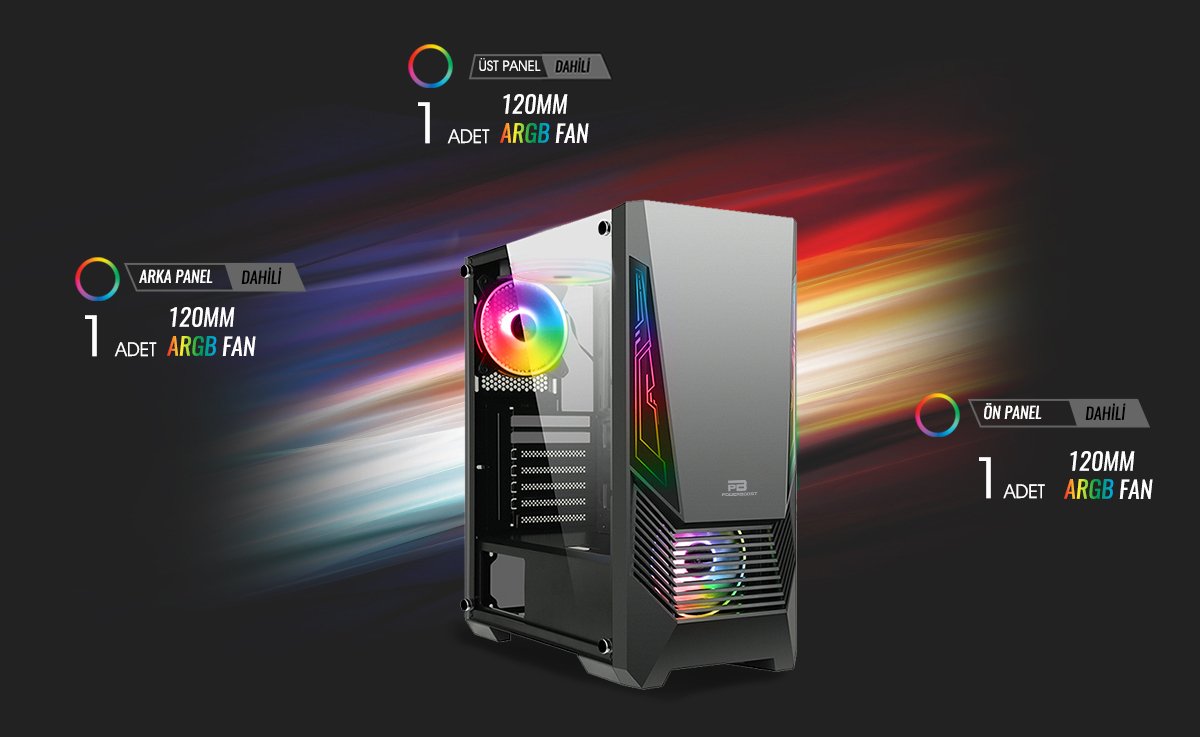 PowerBoost VK-G2051S kasa, şık minimalist tasarımı, temperli cam yan paneli, argb aydınlatması ile göz kamaştıran olağanüstü görünüm sunar. ATX anakart desteği ,geniş iç hacmi ve üstün soğutma desteği ile hardcore sistemler kurmanıza olanak sağlar. Takılı olarak gelen 3 adet 120mm argb fan ile olağanüstü soğutma sunar ve sistemin istikrarlı çalışmasını sağlar. Her seviyeden oyuncu için mükemmel bir tercih olacaktır.