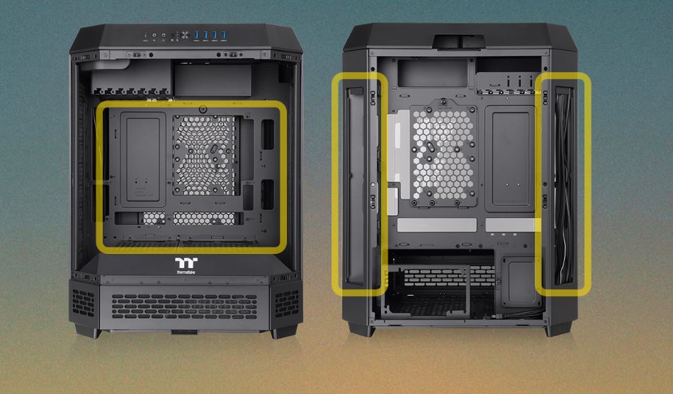 Üst, sol ve sağ taraflarda bulunan montaj braketi seçenekleriyle The Tower 600 Snow, sağ tarafında 420 mm’ye kadar, sol tarafında ise 360 mm’ye kadar AIO radyatör desteği sunar. Ayrıca, on üç adet 120 mm veya dokuz adet 140 mm fana kadar uyum sağlar. Çıkarılabilir fan braketi, kurulum sürecini kolaylaştırarak sistemi kişiselleştirmenize olanak tanır.