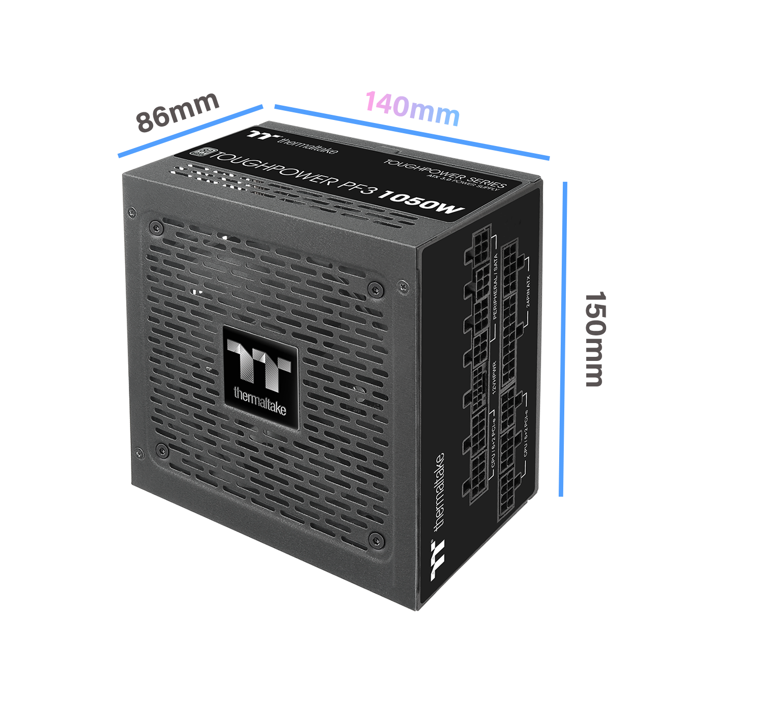 Toughpower PF3 Platinum Serisi, kablo yönetimi için geniş alan sağlayan 140 mm (D) x 86 mm (Y) x 150 mm (G) boyutlarıyla kompakt olacak şekilde tasarlanmıştır.