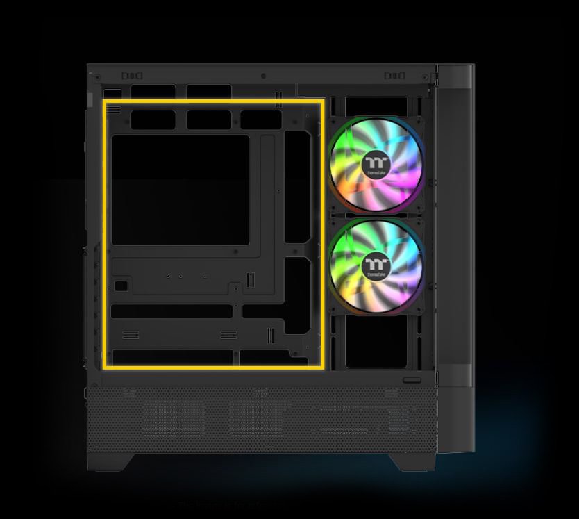 View 290 TG ARGB Snow Mid Tower Kasa, kabloları gizlemek için bolca alan sağlayan ve aynı zamanda sabit diskleriniz ve güç kaynağınız için hava akışını açık tutan, boydan boya uzanan bir güç kaynağı kapağına sahiptir.