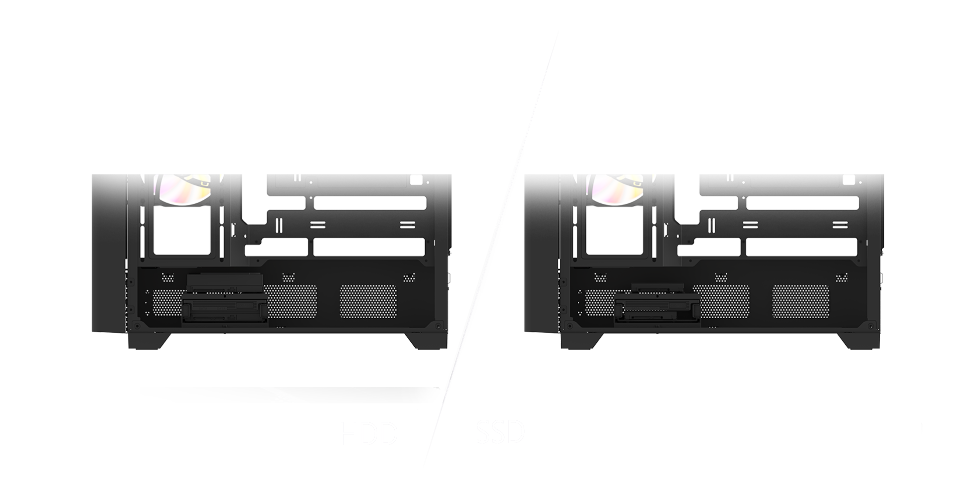 Depolama uyumluluğu açısından, View 290 TG ARGB Snow Mid Tower Kasa, toplamda en fazla iki adet 3,5 inç HDD veya iki adet 2,5 inç SSD'yi destekler.
