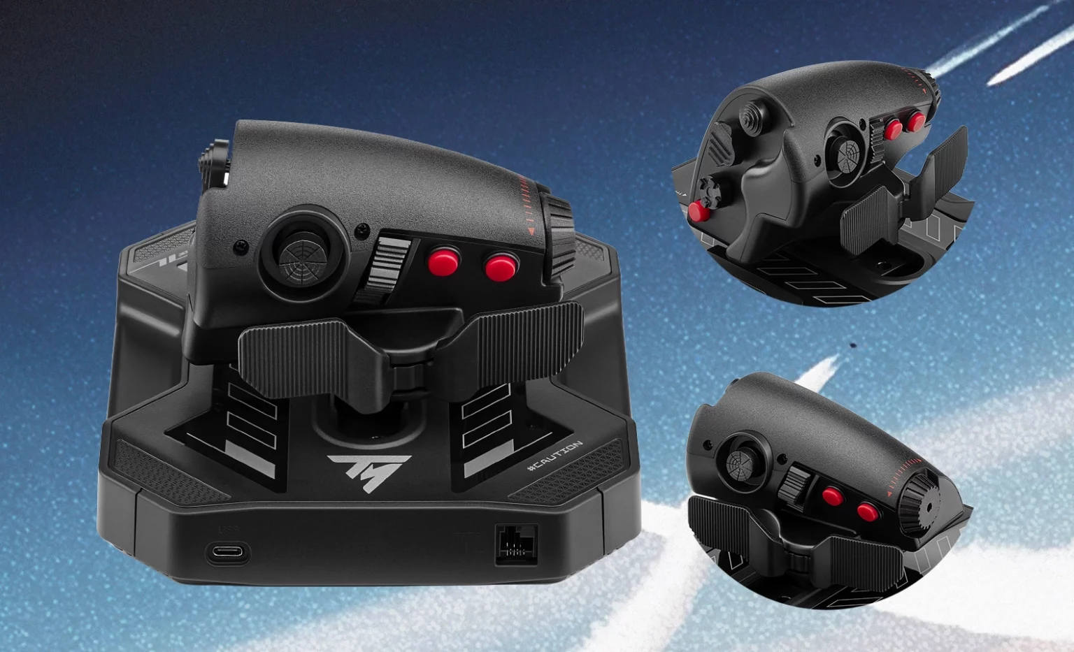 Çoklu kontrollere sahip arayüz sayesinde 14'e kadar ek eylem atayın (4 düğme, 2 x 4 konumlu şapka anahtarı, 1 x 8 konumlu bakış açısı, 1 başparmak tekerleği, 1 mini kol). Yörüngenizi yönetmek için 15° açılı ve yeniden merkezlemeli bir dümen entegre edilmiştir. Sol-R 6 Gaz Kolu, joystick'inize ek olarak parmaklarınızın ucundaki kontrol sayısını artırmanıza olanak tanır. Güç sizin elinizde!